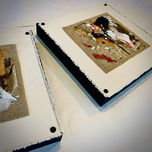MIXED MEDIA CONTEMPORARY PIECES INCLUDING ENCAUSTIC, ASSEMBLAGE, OIL