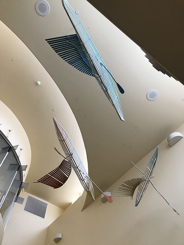 COLORFUL WOOD CONSTRUCTIONS; THEMES OF BOATS, WINGS, PAINTED PANELS W/ SCULPTURE, LARGE CHARCOAL DRAWINGS ON PANELS, ETC.