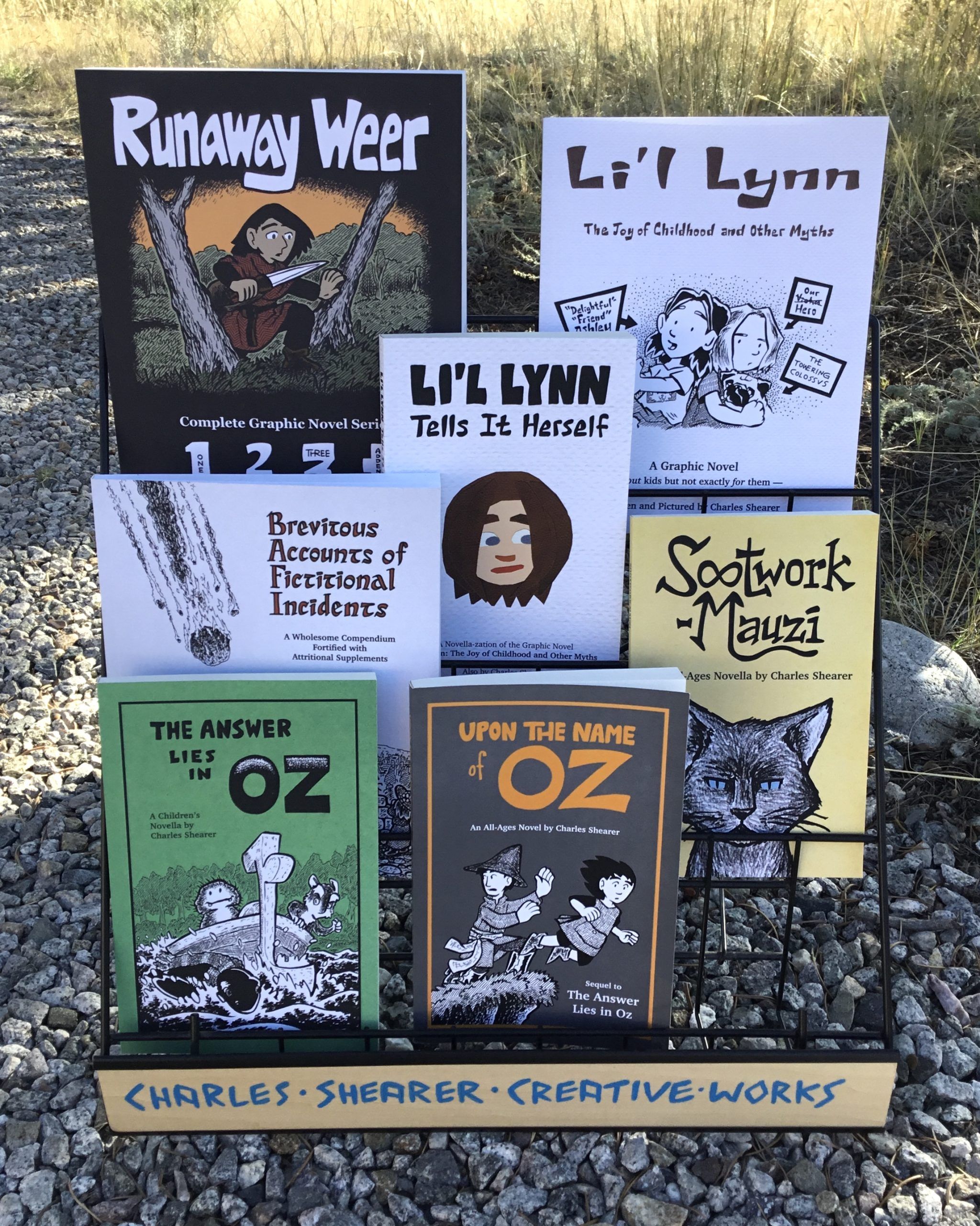 Charles Shearer Creative Works is a one-person small business, making graphic novels for a teen-plus audience, illustrated chapter books for all ages, medieval garments in linen and wool, and leather pouches for daily items. Currently selling at Colorado Wool Company (Salida on F Street) and The Trade (Villa Grove), as well as vending at events for general public and Society for Creative Anachronism.