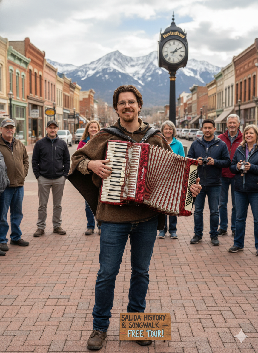 This isn’t just a history lesson—it’s a performance! Your guide, a professional storyteller and musician, will play the accordion as you uncover Salida’s most fascinating secrets, from Wild West legends to chilling local ghost stories. We’ll visit the sites of old saloons, haunted hotels, and more.