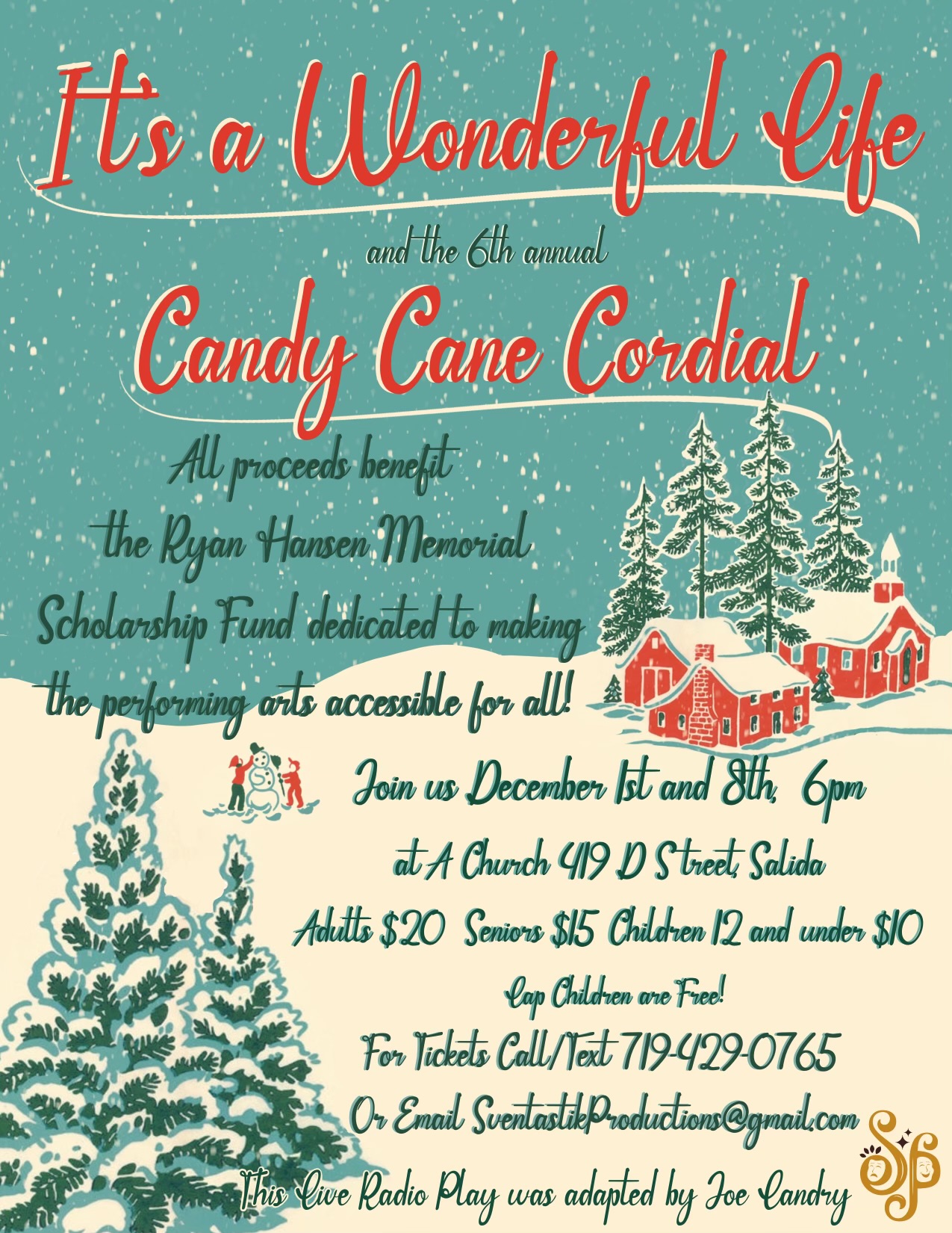 Join us for the 6th annual Candy Cane Cordial! A fun filled evening for the whole family! All funds go to support our Ryan Hansen Memorial Scholarship Fund. Providing scholarships for people of all ages to access performing arts opportunities.